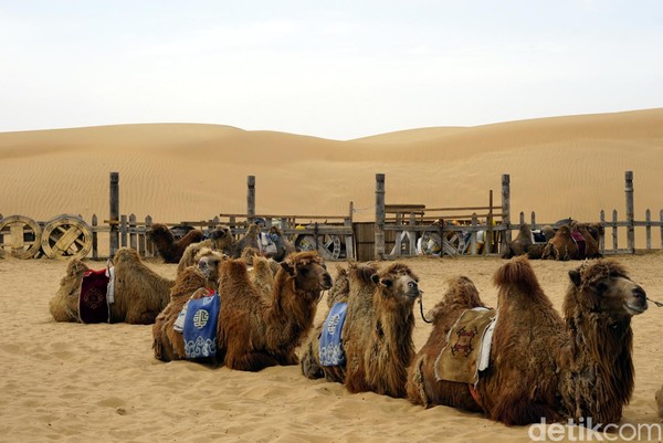Foto Sensasi Naik Unta Di Padang Pasir China
